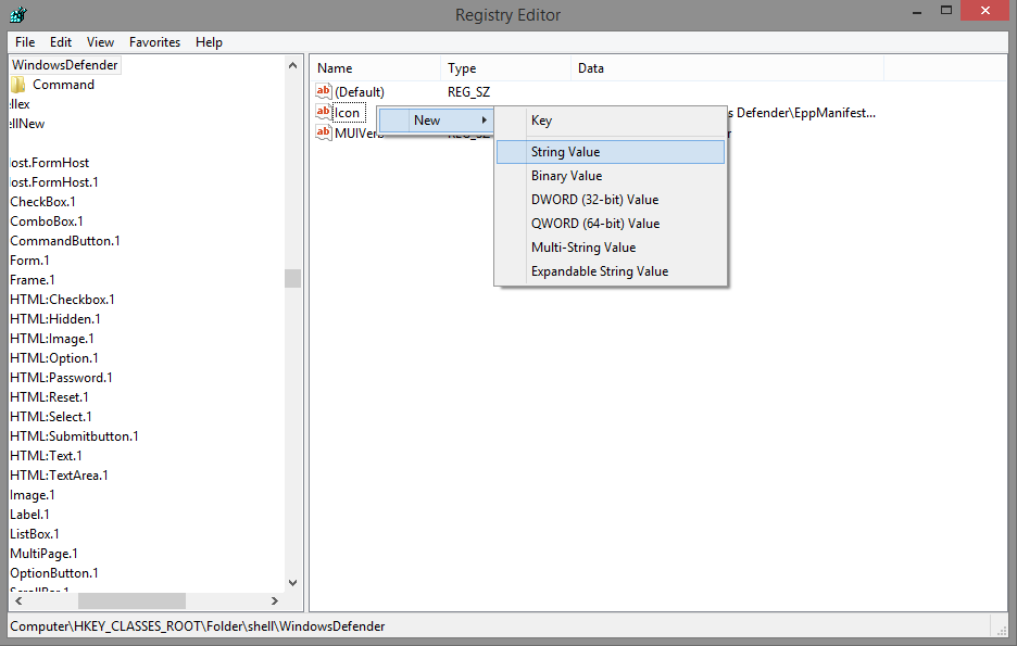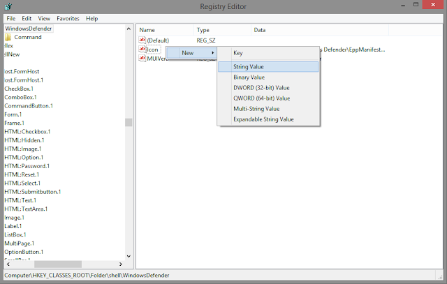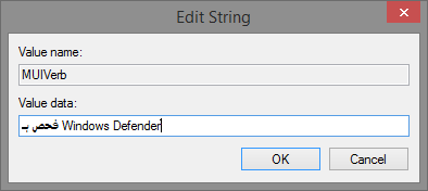 وأضف أيضًا مفتاح آخر وأسمه “MUIVerb” وثم اضغط عليه وسمه كما تشاء مثل “فحص عن طريق دفاع ويندوز”.