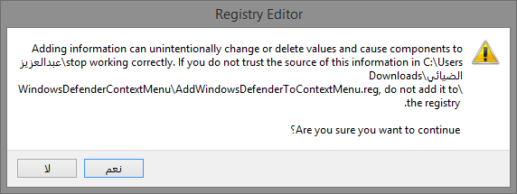 لإضافة ” فحص عن طريق دفاع ويندوز” لقائمة السياق لملفات ويندوز كما كان خليفته في ويندوز 7 ببرنامج Microsoft Security Essentials لديك خيارين اختر ما يناسبك :