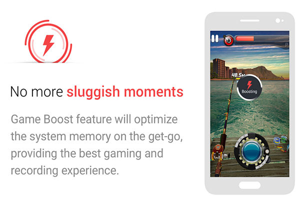 بل أيضا فان التطبيق يمنحك ميزة تسريع الألعاب و تصويرها بشكل عادي دون تشنجات ليكون الهاتف سلسا عند عملية تصوير فيديو معين.
